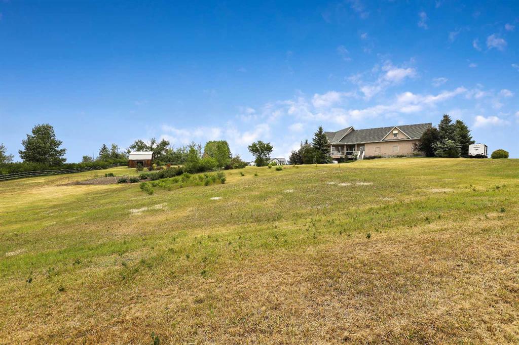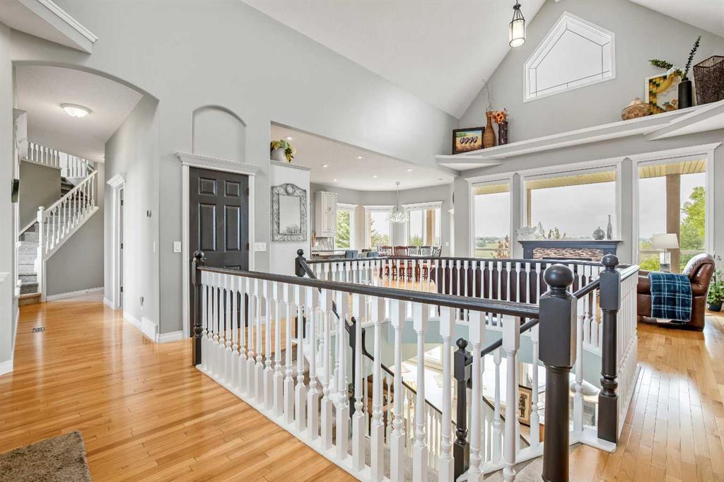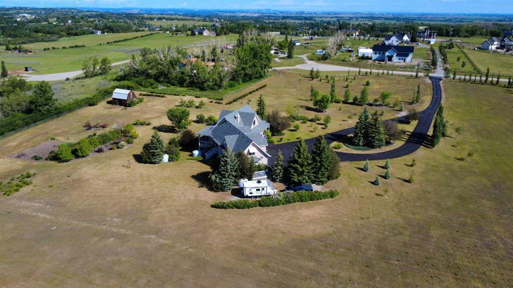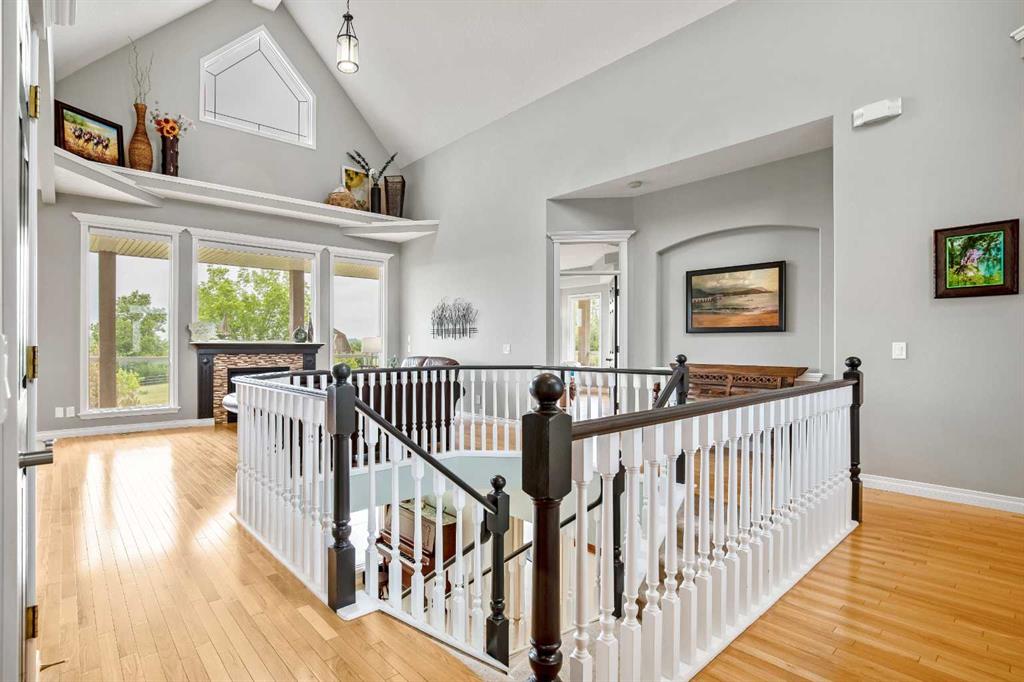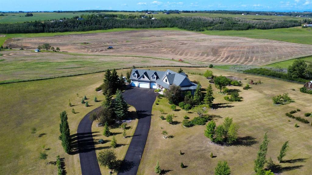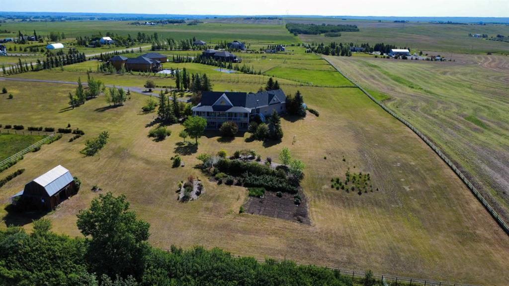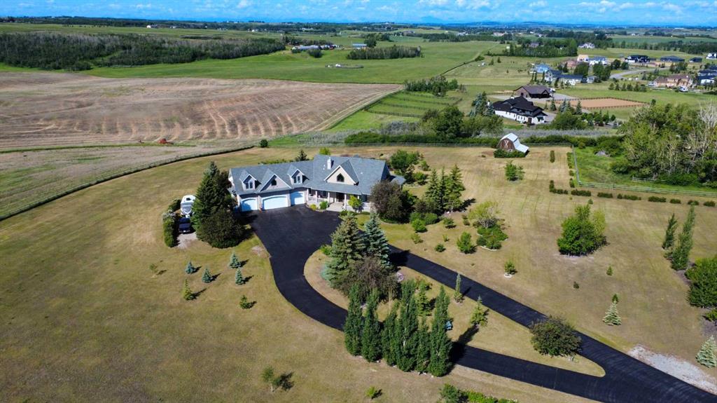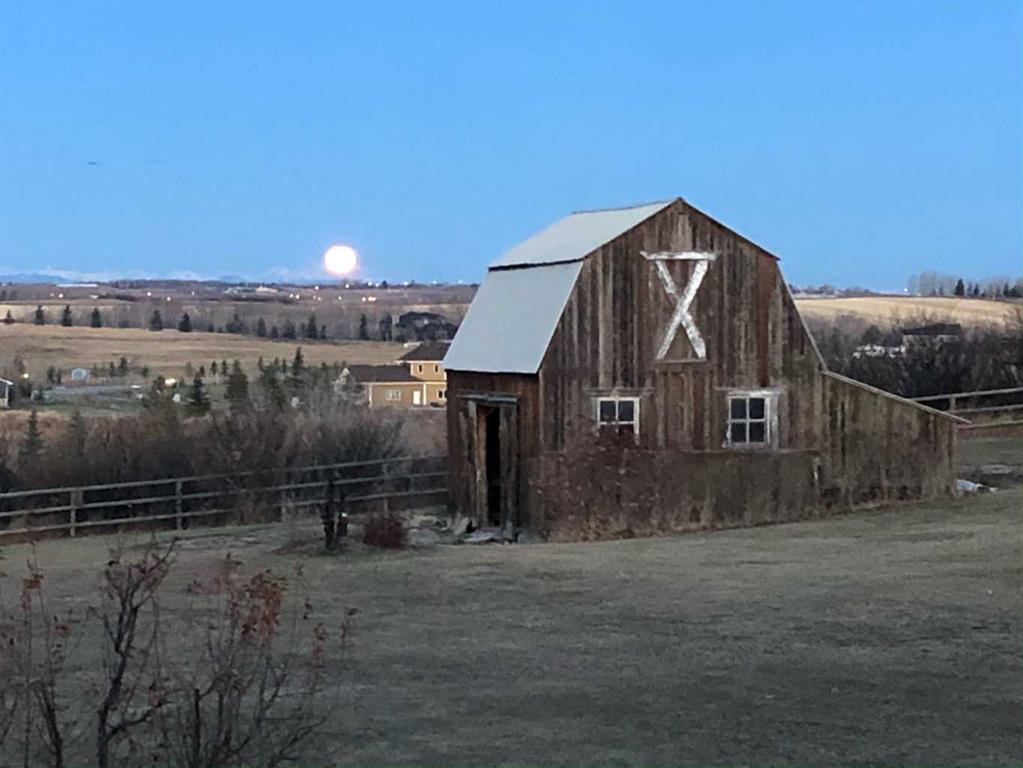 WELCOME to 56065 Ridgeview DR E! MOUNTAIN VIEWS, EXECUTIVE HOME, 6.55 ACRES, ESTABLISHED LANDSCAPING, VERY PRIVATE SETTING, 1930 BARN! Located mins from Calgary, Okotoks, Heritage Heights School, St Francis of Assisi School, Seamans Area and the Bow River. This Executive walkout Bungalow with a quad garage and bonus loft is everything you are looking for to live your dream at its finest! There are Stunning Mountain Views from almost every window of this home lovingly cared for and maintained home. It was also a former SAM Award winner which is evident as you are greeted by the grand circular drive way, the excellent curb appeal with a 3 sided exposed aggregate wrap around deck, 3 rail fencing that surrounds the property, the vintage style barn & quad garage. With over 3900 sq ft of developed living space you can cater for the whole family plus many, many guests. The main floor open concept living area offers gleaming hardwood floors, a feature fireplace set into a wall of windows to display the unobstructed Mountain Views. The kitchen boasts a flood of natural light also with an abundance of windows, large granite countertop, lots of cabinets, double ovens and a large pantry leading to the mud room. The dining nook offers the most perfect seating bench to relax with a cup of tea or chat while dinner is being prepared. The primary bedroom overlooks the fully landscaped yard and views , as well as boasting a romantic fireplace. The newly renovated ensuite is gorgeous with heated floors, soaker tub, glass shower, dual sinks and walk in closet. An open center staircase at the entrance leads to the lower level walkout with heated floors, a large family room to enjoy time with family, 2 bedrooms, a stylish 4 pc bathroom and multi purpose/cold room, and lots of storage. The dormered bonus room above the quad garage is the perfect quiet space, guest suite, hobby room or gym, the possibilities are really endless. with this space. The magnificent garage offers a separate heated workshop, lots of shelving and plenty room to park all of your toys. The places to entertain are endless with the wrap around deck and lower walk out patio. The established yard comes complete with a large garden, greenhouse, fruit orchard and even grapevines that produce lovely grapes every year. The vintage barn is a very handy space to store the yard equipment and add a veryy unique feature to this property. The owners have enjoyed this property, all of the views the abunbance of wildlife, (deer & elk )that travel the wildlife corridor in the valley behind this property. This is a legacy property that dreams are made of and on. Check out the 3D tour and Drone video, Call to view today for your personal Viewing!