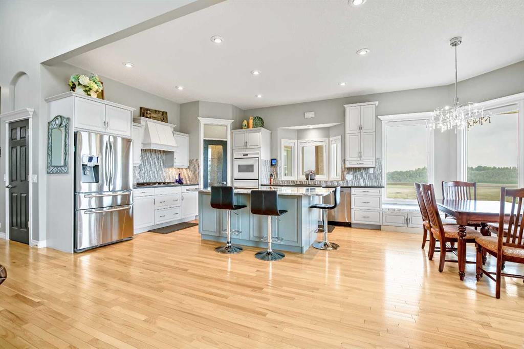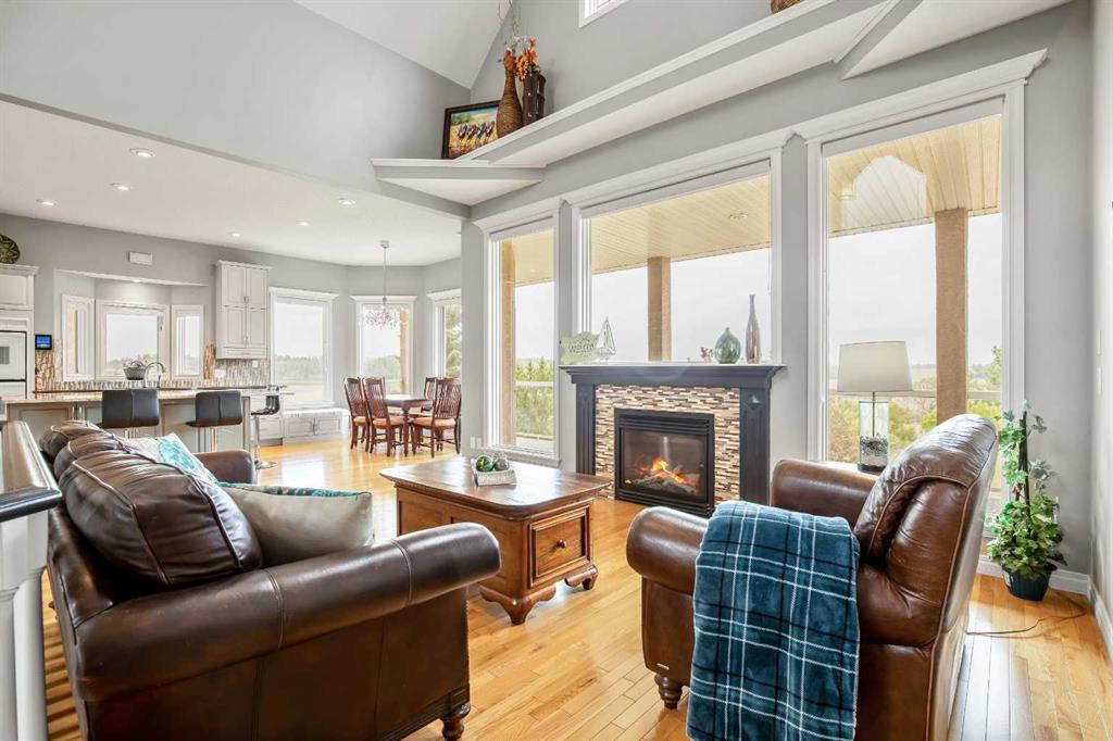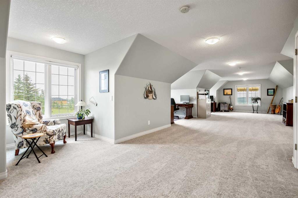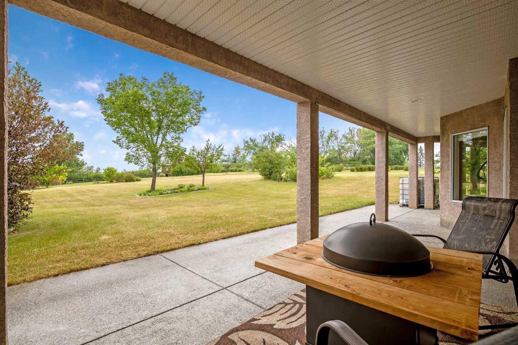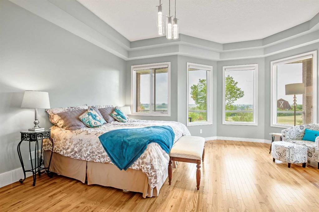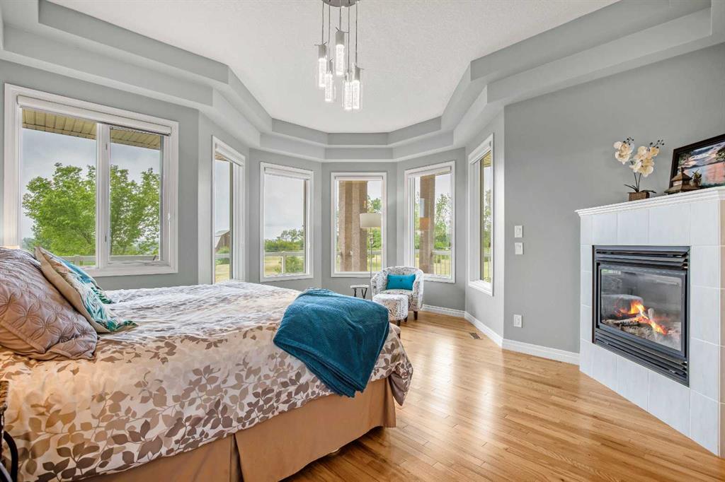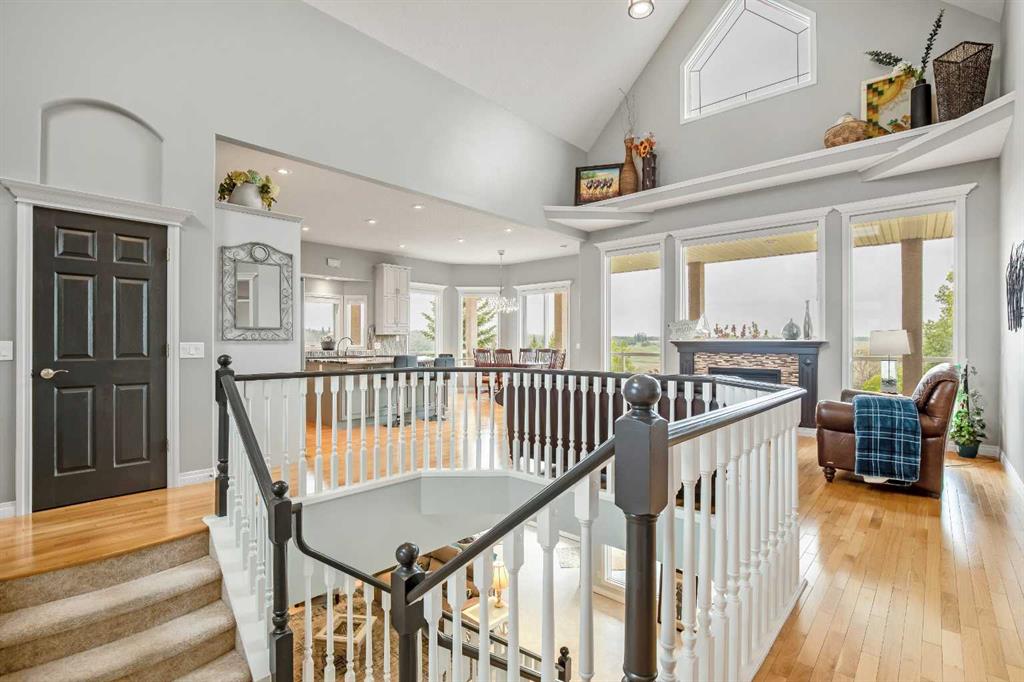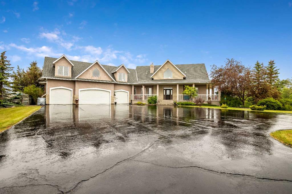 WELCOME to 56065 Ridgeview DR E! MOUNTAIN VIEWS, EXECUTIVE HOME, 6.55 ACRES, ESTABLISHED LANDSCAPING, VERY PRIVATE SETTING, 1930 BARN! Located mins from Calgary, Okotoks, Heritage Heights School, St Francis of Assisi School, Seamans Area and the Bow River. This Executive walkout Bungalow with a quad garage and bonus loft is everything you are looking for to live your dream at its finest! There are Stunning Mountain Views from almost every window of this home lovingly cared for and maintained home. It was also a former SAM Award winner which is evident as you are greeted by the grand circular drive way, the excellent curb appeal with a 3 sided exposed aggregate wrap around deck, 3 rail fencing that surrounds the property, the vintage style barn & quad garage. With over 3900 sq ft of developed living space you can cater for the whole family plus many, many guests. The main floor open concept living area offers gleaming hardwood floors, a feature fireplace set into a wall of windows to display the unobstructed Mountain Views. The kitchen boasts a flood of natural light also with an abundance of windows, large granite countertop, lots of cabinets, double ovens and a large pantry leading to the mud room. The dining nook offers the most perfect seating bench to relax with a cup of tea or chat while dinner is being prepared. The primary bedroom overlooks the fully landscaped yard and views , as well as boasting a romantic fireplace. The newly renovated ensuite is gorgeous with heated floors, soaker tub, glass shower, dual sinks and walk in closet. An open center staircase at the entrance leads to the lower level walkout with heated floors, a large family room to enjoy time with family, 2 bedrooms, a stylish 4 pc bathroom and multi purpose/cold room, and lots of storage. The dormered bonus room above the quad garage is the perfect quiet space, guest suite, hobby room or gym, the possibilities are really endless. with this space. The magnificent garage offers a separate heated workshop, lots of shelving and plenty room to park all of your toys. The places to entertain are endless with the wrap around deck and lower walk out patio. The established yard comes complete with a large garden, greenhouse, fruit orchard and even grapevines that produce lovely grapes every year. The vintage barn is a very handy space to store the yard equipment and add a veryy unique feature to this property. The owners have enjoyed this property, all of the views the abunbance of wildlife, (deer & elk )that travel the wildlife corridor in the valley behind this property. This is a legacy property that dreams are made of and on. Check out the 3D tour and Drone video, Call to view today for your personal Viewing!