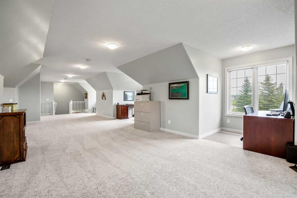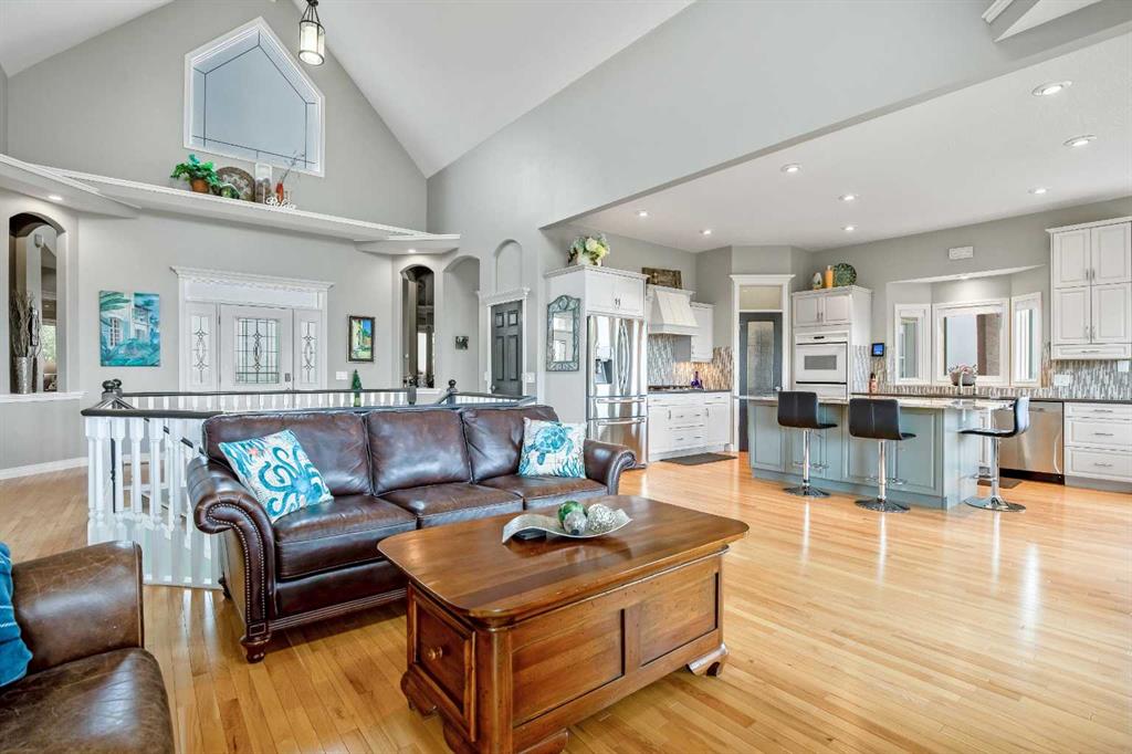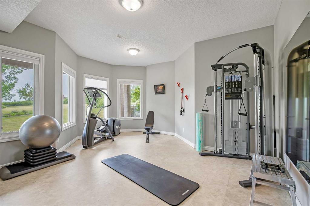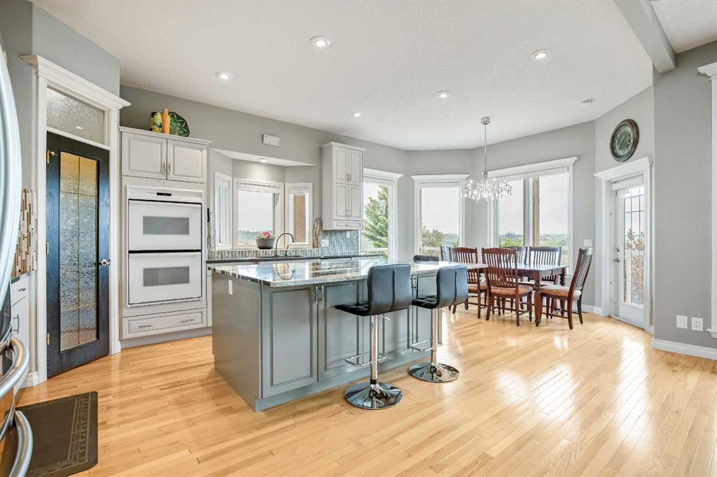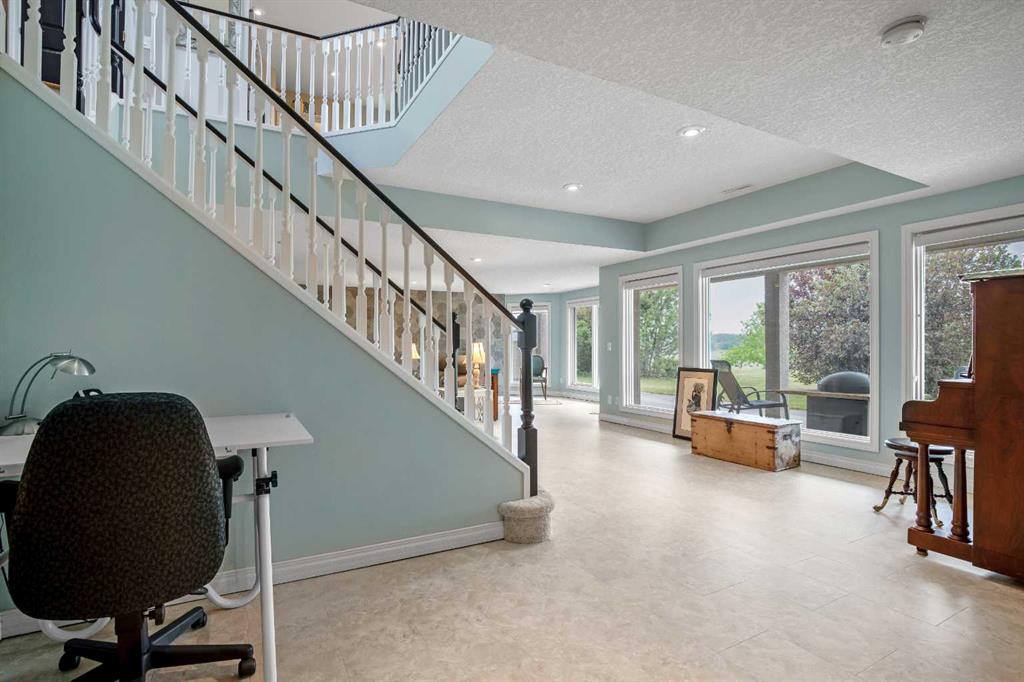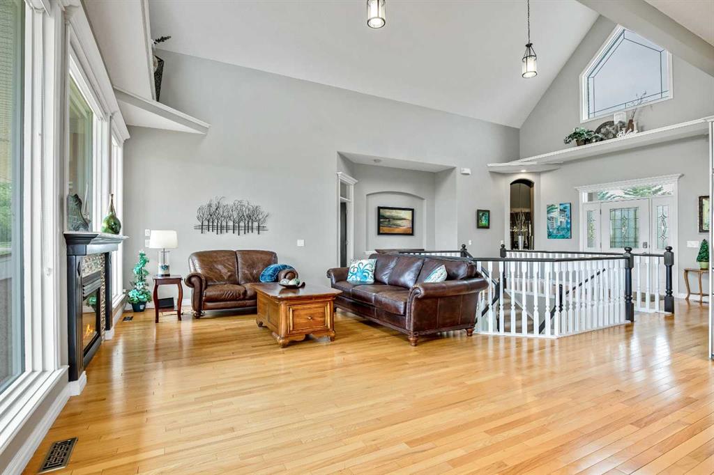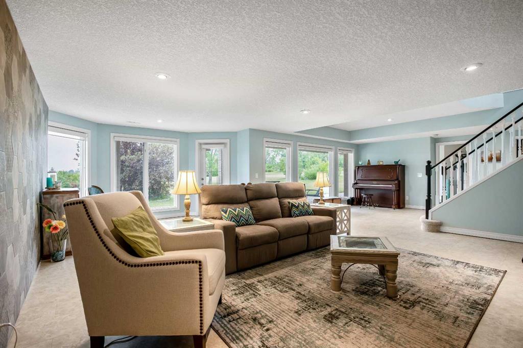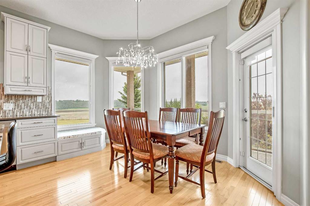 WELCOME to 56065 Ridgeview DR E! MOUNTAIN VIEWS, EXECUTIVE HOME, 6.55 ACRES, ESTABLISHED LANDSCAPING, VERY PRIVATE SETTING, 1930 BARN! Located mins from Calgary, Okotoks, Heritage Heights School, St Francis of Assisi School, Seamans Area and the Bow River. This Executive walkout Bungalow with a quad garage and bonus loft is everything you are looking for to live your dream at its finest! There are Stunning Mountain Views from almost every window of this home lovingly cared for and maintained home. It was also a former SAM Award winner which is evident as you are greeted by the grand circular drive way, the excellent curb appeal with a 3 sided exposed aggregate wrap around deck, 3 rail fencing that surrounds the property, the vintage style barn & quad garage. With over 3900 sq ft of developed living space you can cater for the whole family plus many, many guests. The main floor open concept living area offers gleaming hardwood floors, a feature fireplace set into a wall of windows to display the unobstructed Mountain Views. The kitchen boasts a flood of natural light also with an abundance of windows, large granite countertop, lots of cabinets, double ovens and a large pantry leading to the mud room. The dining nook offers the most perfect seating bench to relax with a cup of tea or chat while dinner is being prepared. The primary bedroom overlooks the fully landscaped yard and views , as well as boasting a romantic fireplace. The newly renovated ensuite is gorgeous with heated floors, soaker tub, glass shower, dual sinks and walk in closet. An open center staircase at the entrance leads to the lower level walkout with heated floors, a large family room to enjoy time with family, 2 bedrooms, a stylish 4 pc bathroom and multi purpose/cold room, and lots of storage. The dormered bonus room above the quad garage is the perfect quiet space, guest suite, hobby room or gym, the possibilities are really endless. with this space. The magnificent garage offers a separate heated workshop, lots of shelving and plenty room to park all of your toys. The places to entertain are endless with the wrap around deck and lower walk out patio. The established yard comes complete with a large garden, greenhouse, fruit orchard and even grapevines that produce lovely grapes every year. The vintage barn is a very handy space to store the yard equipment and add a veryy unique feature to this property. The owners have enjoyed this property, all of the views the abunbance of wildlife, (deer & elk )that travel the wildlife corridor in the valley behind this property. This is a legacy property that dreams are made of and on. Check out the 3D tour and Drone video, Call to view today for your personal Viewing!